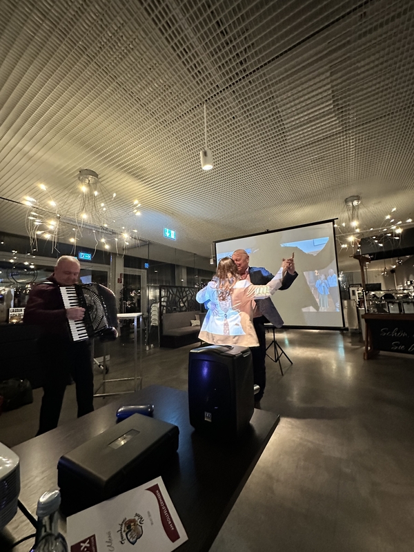 Musikalisch begleitet wurde der Empfang von Zoran Arvaj, Vorsitzender des Vereins Pro Sarajevo, der mit seinen Klängen zur besonderen Atmosphäre des Abends beitrug. Jürgen Binder überraschte die Gäste zudem mit einer Bildpräsentation, die ins Jahr 2013 zurückblickte und unter anderem die Friedrichshafener Woche in Polozk in Erinnerung rief. Zum Abschluss bedankte sich Igor Veremyov bei den Mitgliedern und gab einen Ausblick auf die Vorhaben des Vereins im Jahr 2026.