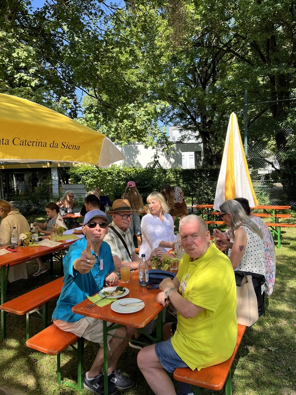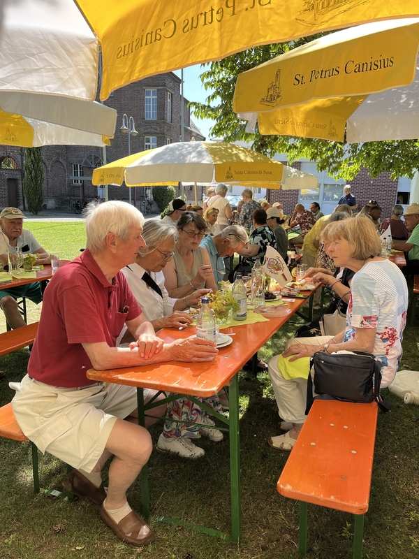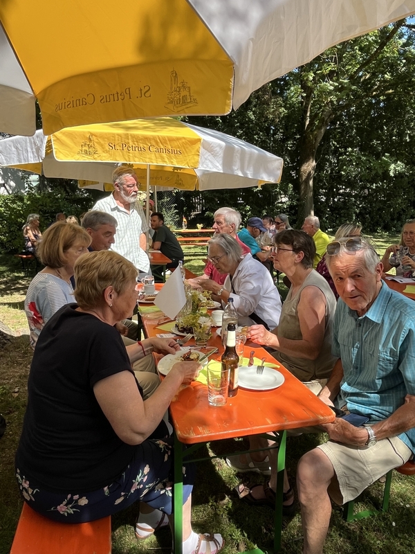 Ein Wiedersehen ließ nicht lange auf sich warten. Beim diesjährigen Sommerfest luden ein abwechslungsreiches und köstliches Buffet sowie bestes Sommerwetter zum Verweilen ein. Unter den schattenspenden Bäumen und mit hervorragendem Blick auf die Canisius-Kirche konnte man es sich schmecken lassen und sich in zwangloser Atmosphäre mit unseren Polozker Gästen unterhalten. Ein spezieller Dank geht hier an Marianne Dreßler sowie an ihr Team!